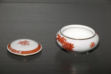 Dose rund 7,5cm Dekor - Mingdrache rot 1.Wahl