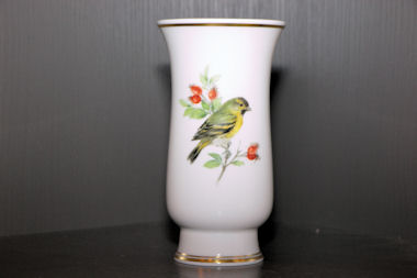 Vase h = 15cm mit Goldrand Dekor - Vogel Fink 1.Wahl