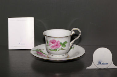 Kaffeetasse mit Untertasse Dekor - rote Rose 1.Wahl