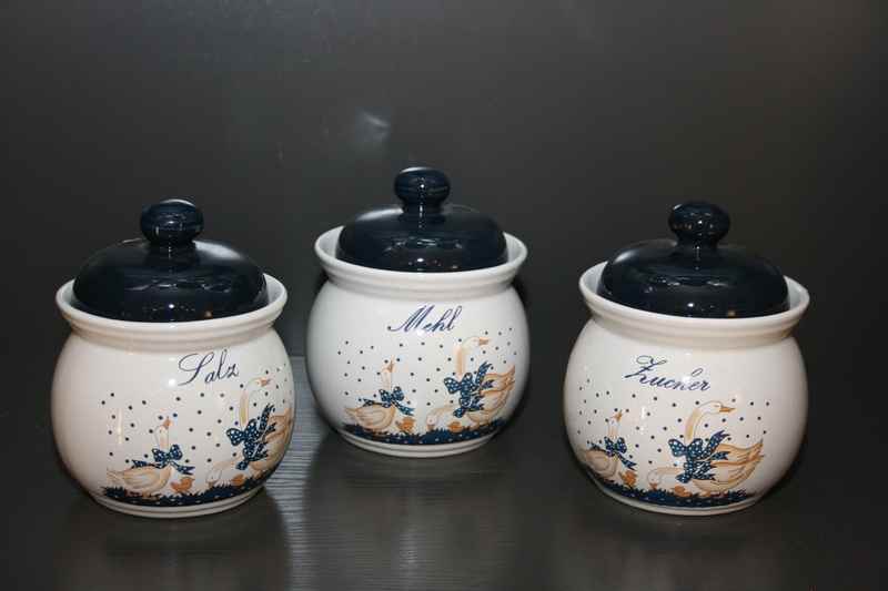 Vorratsdose Mehl / Zucker / Salz Serie "Gänse" blau-braun dekoriert Höhe = 16 cm