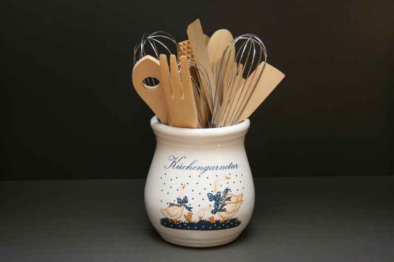 Küchenutensilien komplett Serie "Gänse" blau-braun dekoriert Höhe = 25 cm