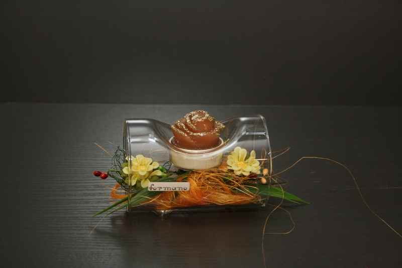 Glasröhre 1-flammig + 1 Teelicht komplett dekoriert , mit Deko Länge = 10,5 cm